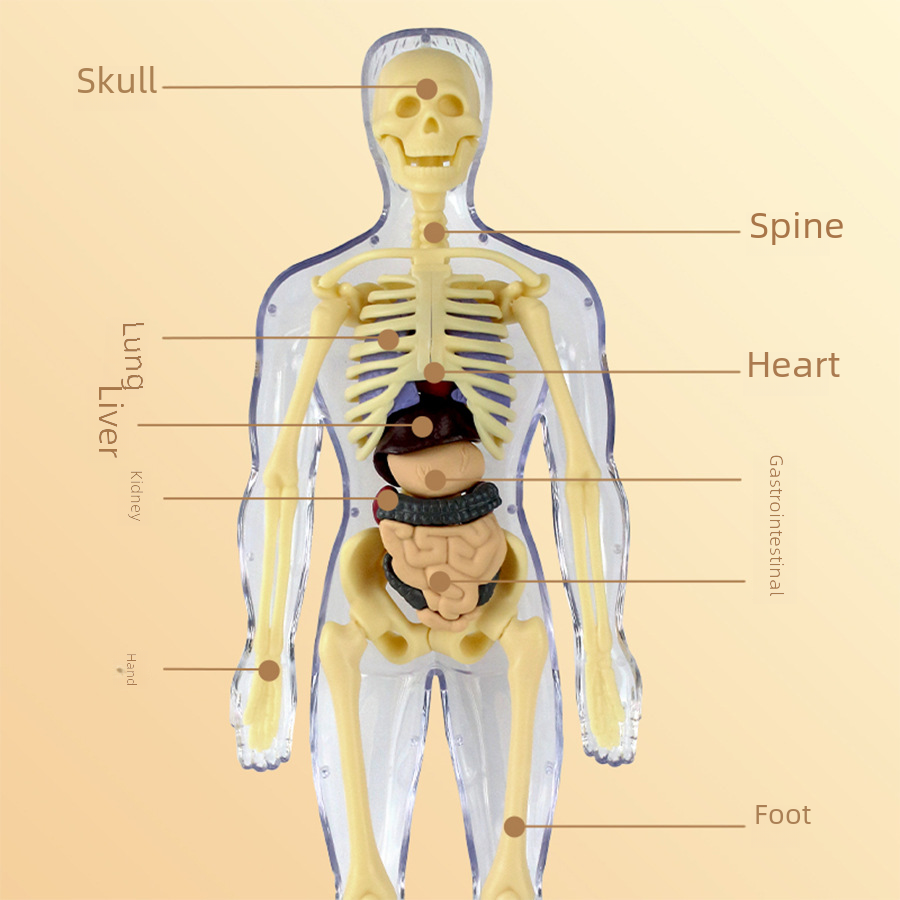 1 mini modelo de esqueleto humano com órgãos em 3D